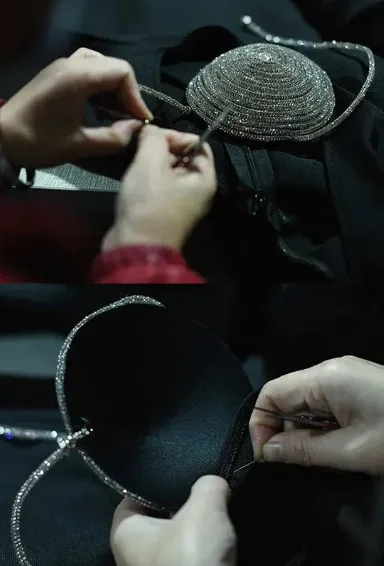 Ayrıca, işlemeli elbiselerimizdeki süslemeler, usta zanaatkârlar tarafından elde dikilerek büyük bir özenle hazırlanır. Emek yoğun bu süreç, doğal dökülmeyi en aza indirir ve her bir elbisenin uzun ömürlü ve sofistike tasarımını korur.