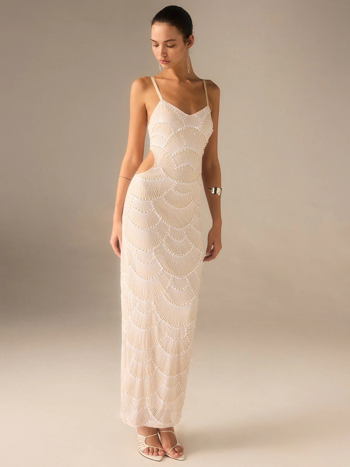 Capriana Orkide Jakarlı Saten Maxi Elbise