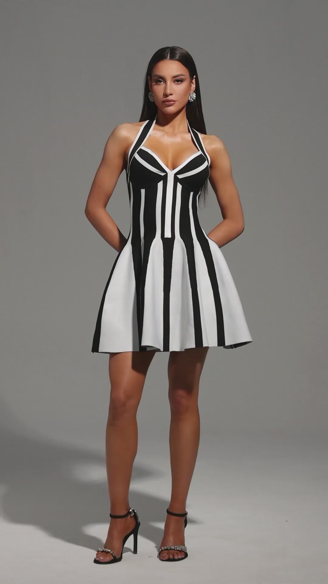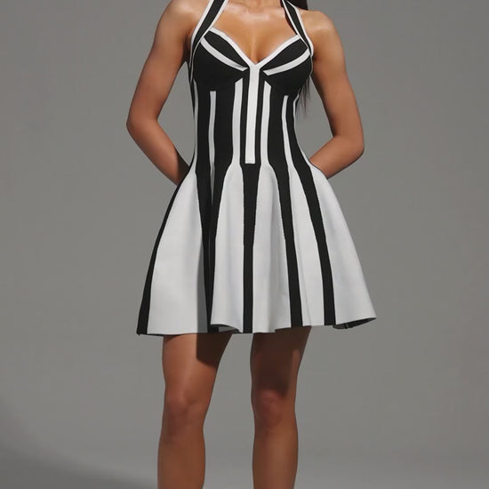 Büstiyer Detaylı Sırtı Açık Patchwork Mini Elbise