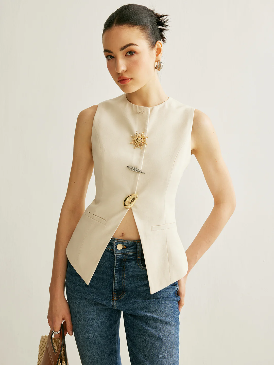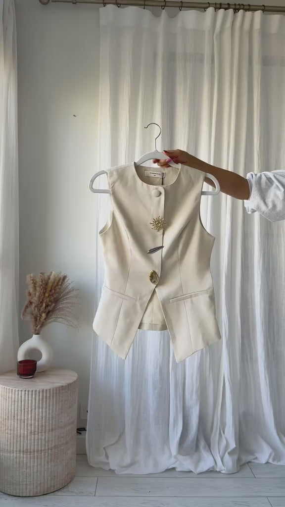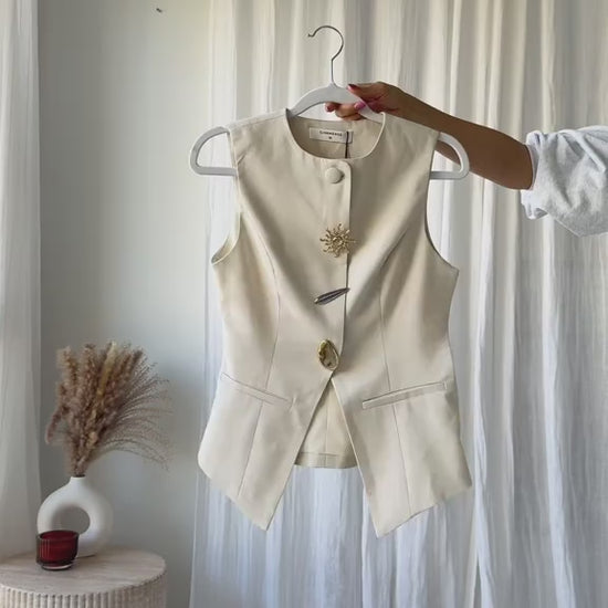 Metal Detaylı Split Yelek & Pantolon