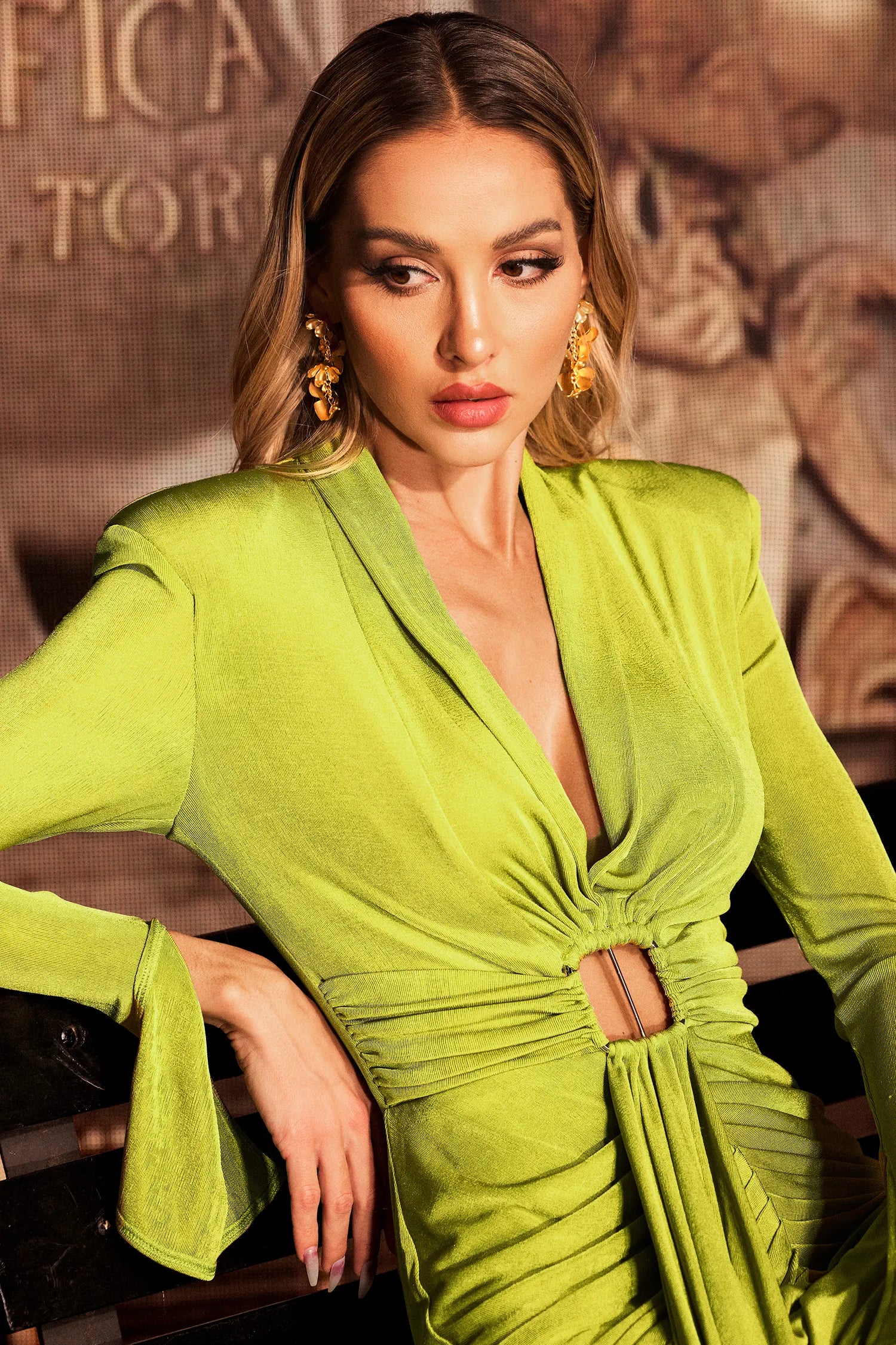 Büzgülü Sırtı Açık Fırfırlı Cami Kısa Elbise