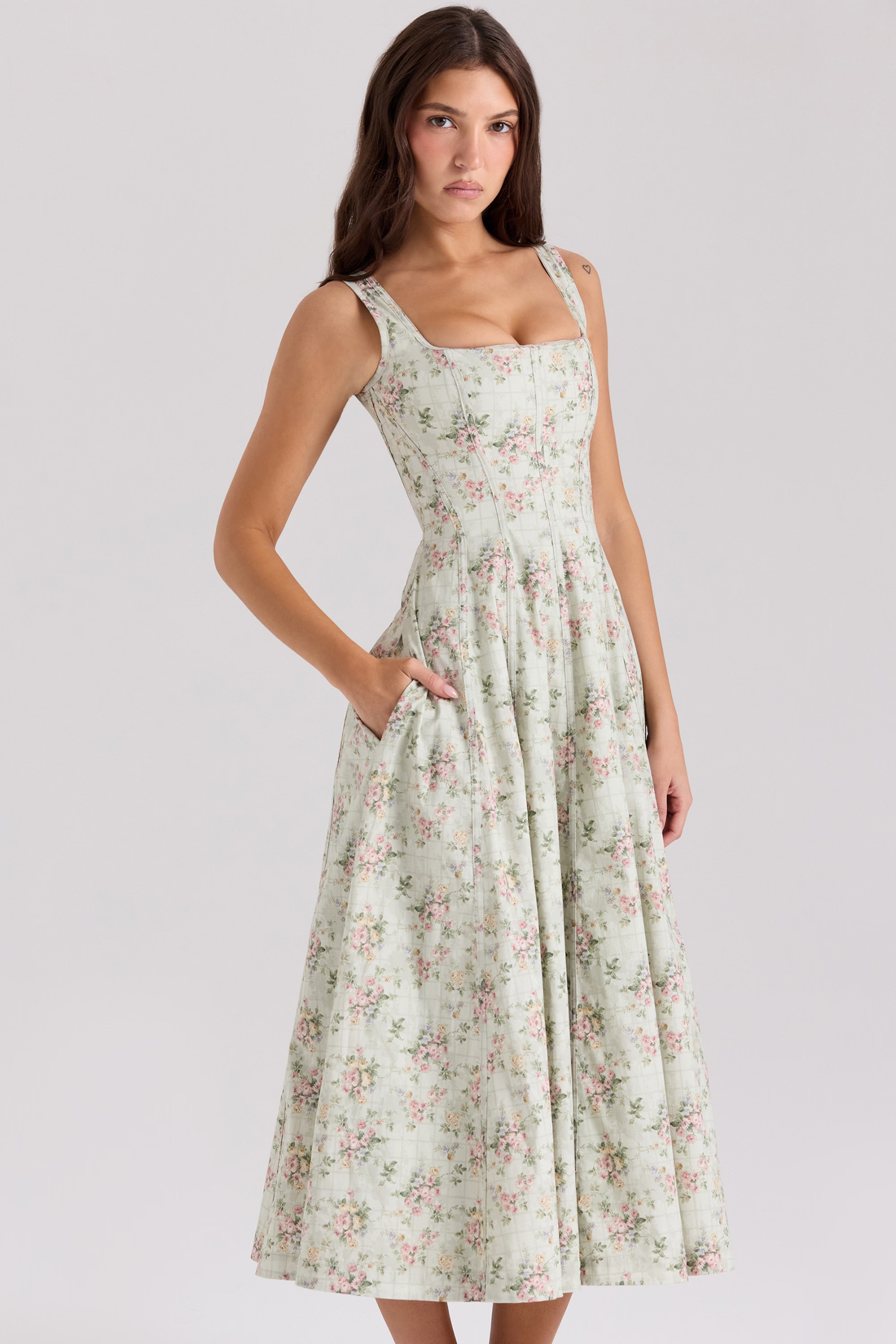 Amoura Floral Midi Elbise