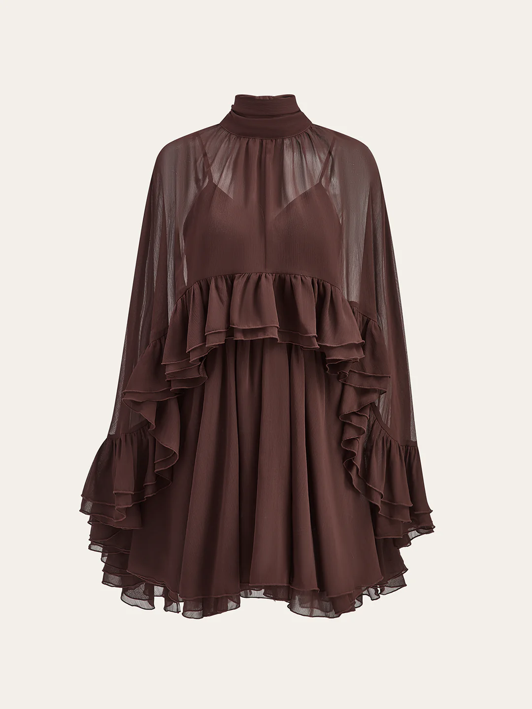 Büzgülü Sırtı Açık Fırfırlı Cami Kısa Elbise