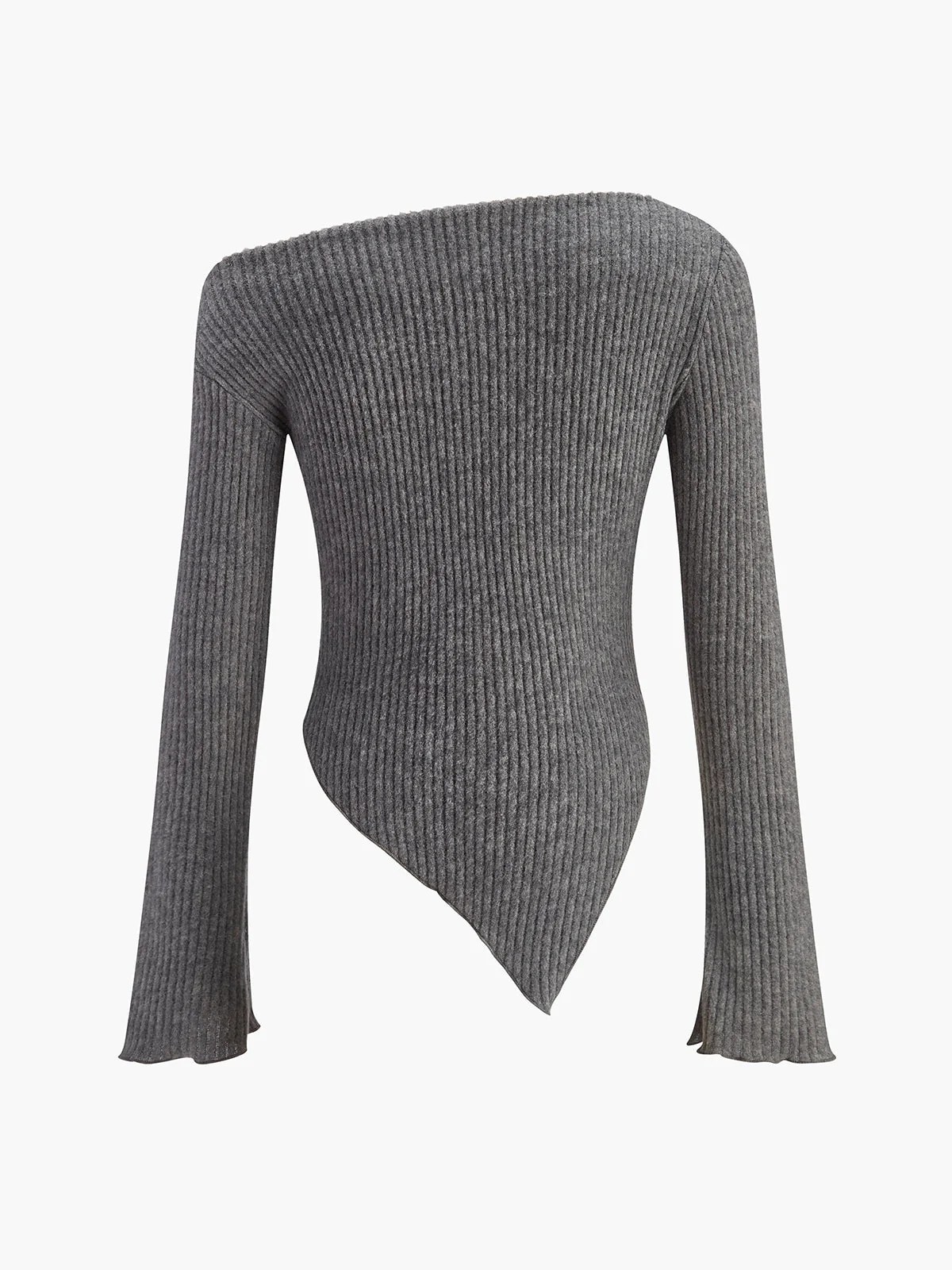 Şık Asimetrik Dar Kesim Soğuk Omuzlu Triko Üst
