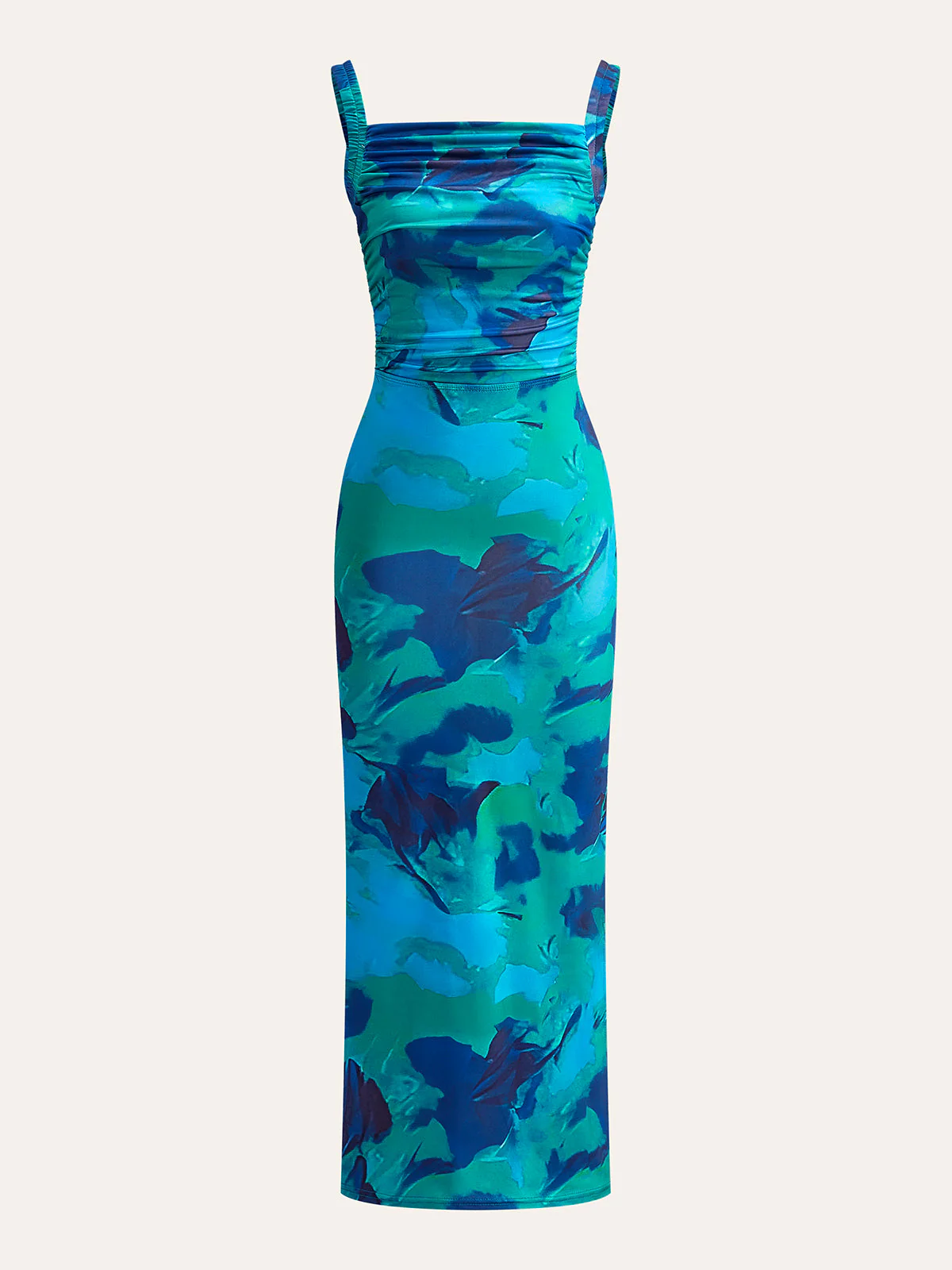 Coler Yırtmaç Detaylı Askılı Saten Mini Elbise