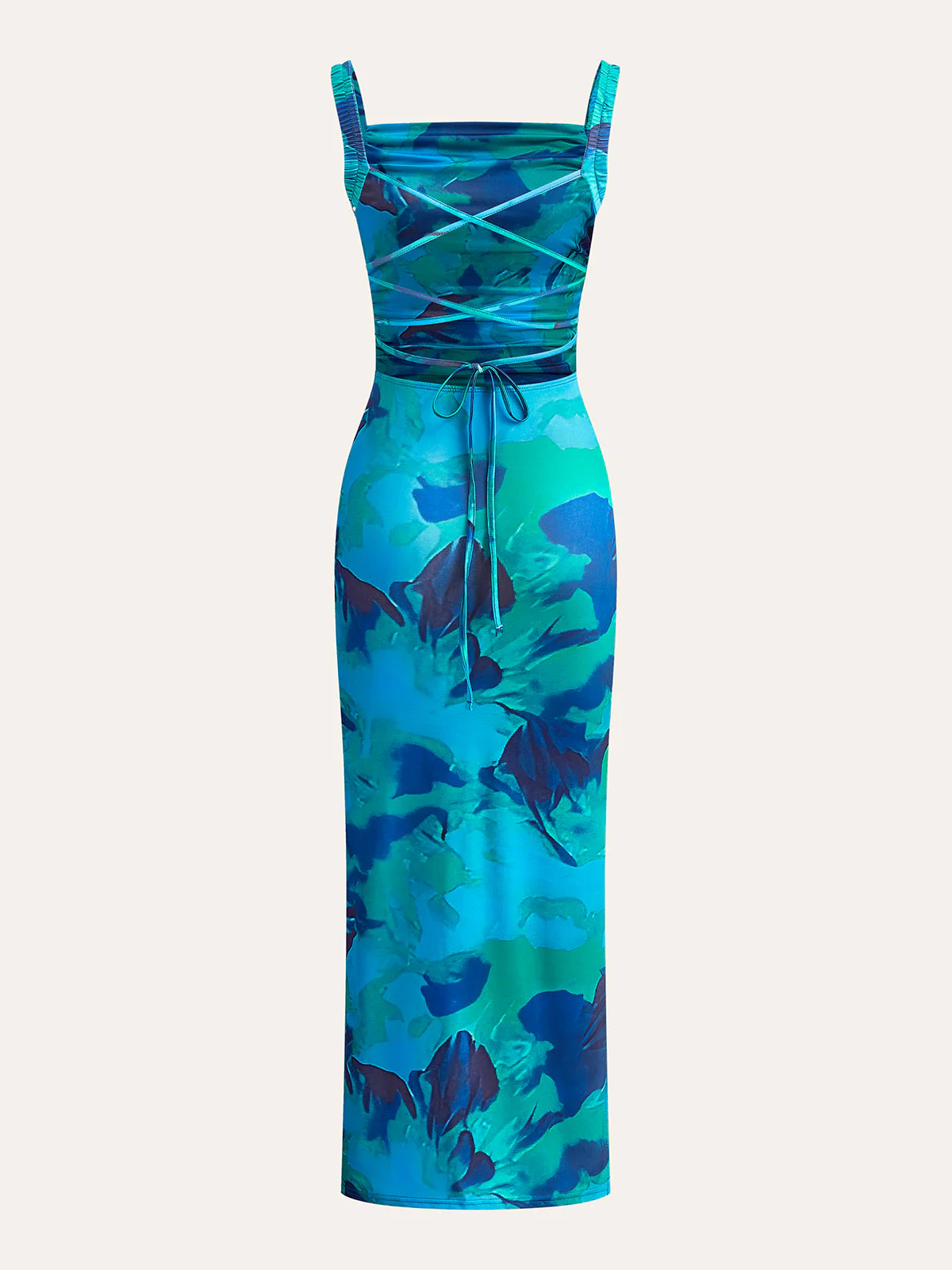 Çiçek Desenli Halter Yaka Bağcıklı Üst