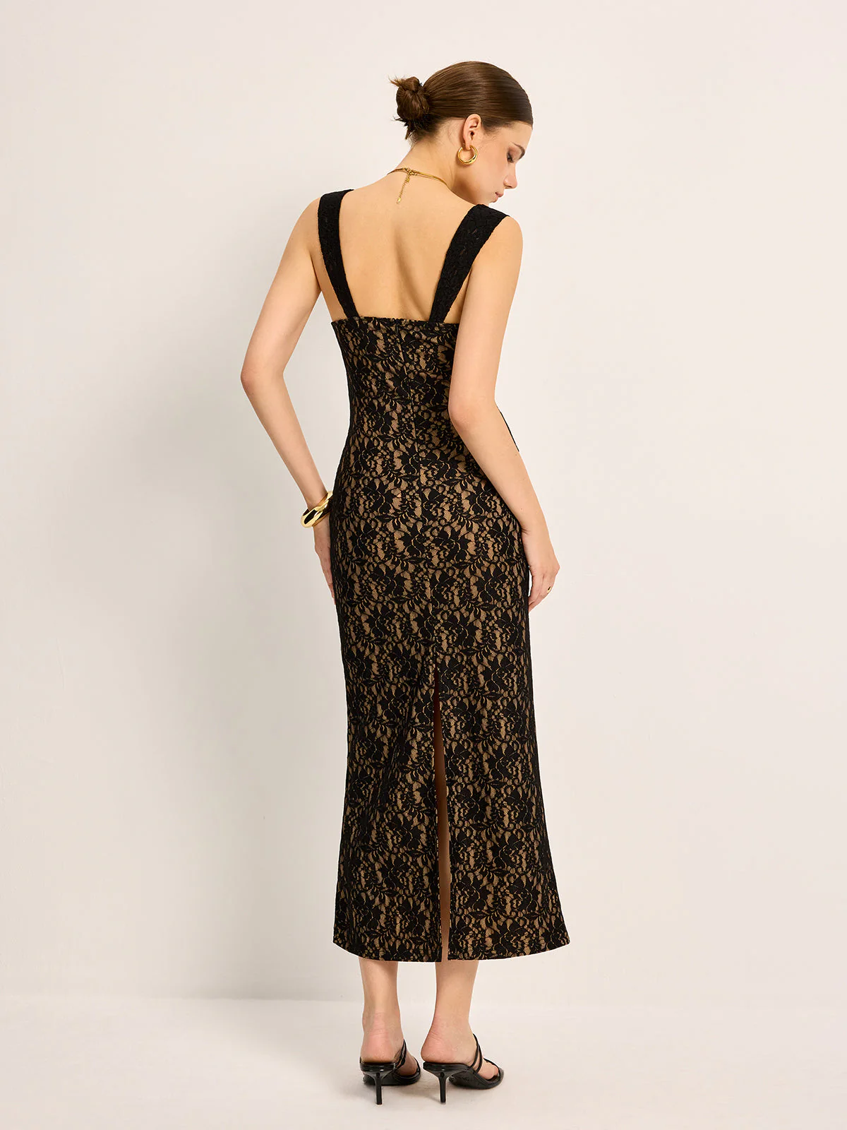 Capriana Orkide Jakarlı Saten Maxi Elbise