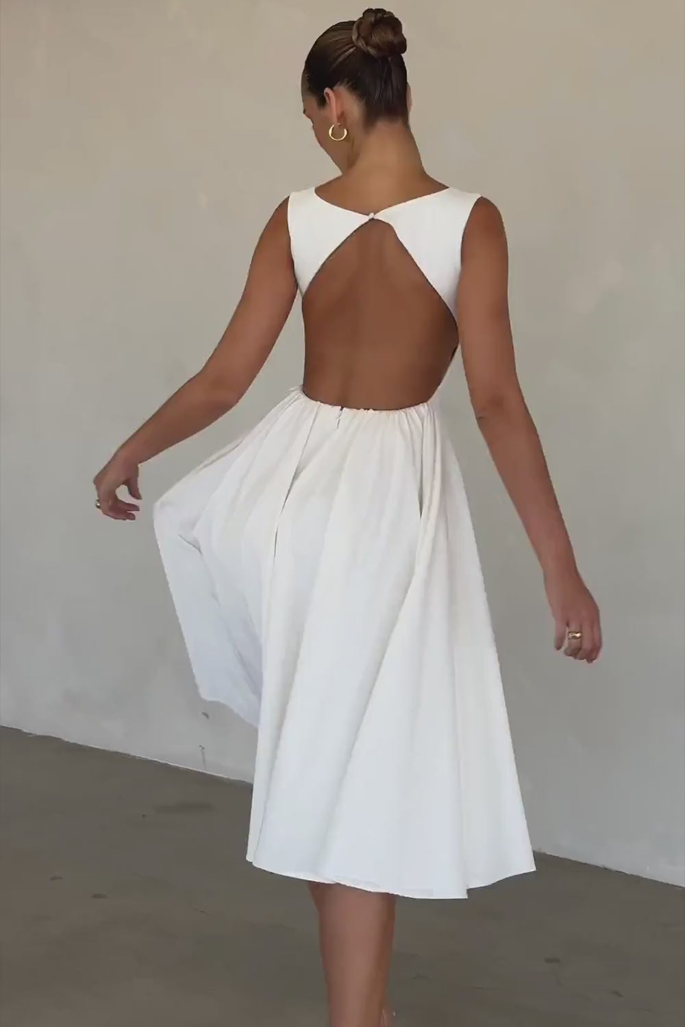 Büzgülü Sırtı Açık Fırfırlı Cami Kısa Elbise